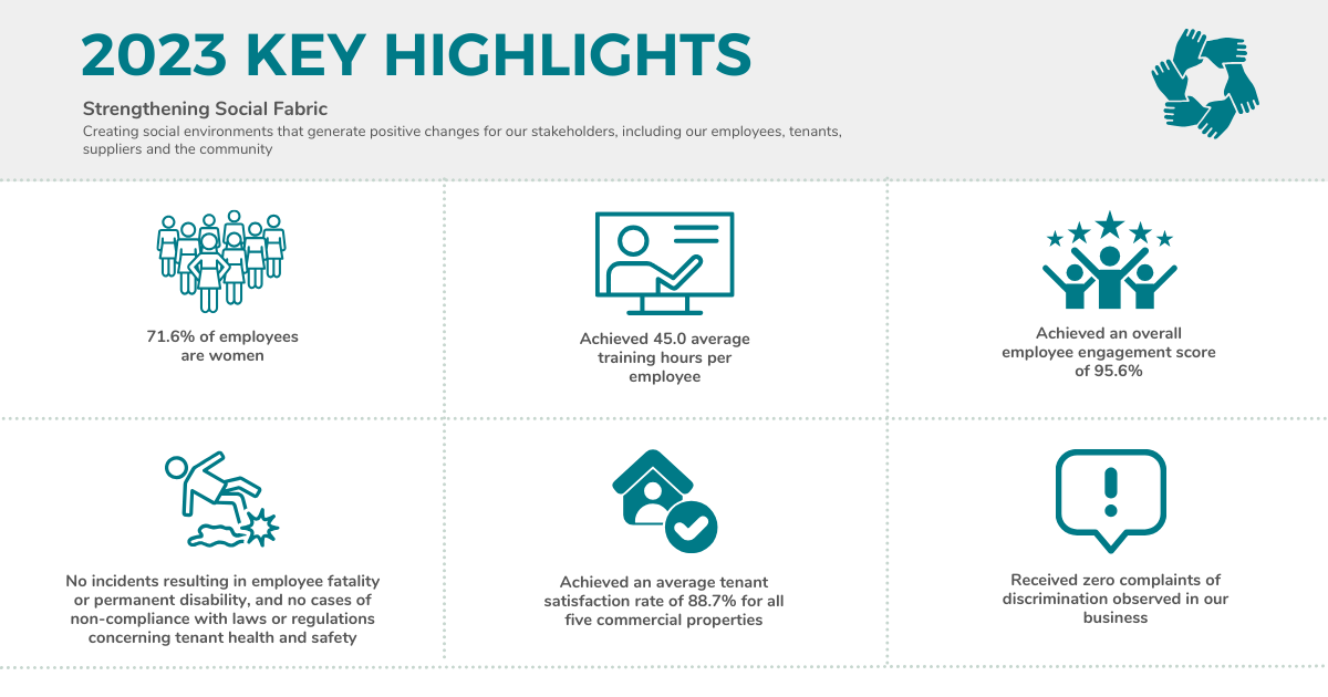 We conducted our first employee engagement survey in 2023 to better understand employees’ various needs through feedback on areas for improvement. The Manager’s key management is working with the OUE Group HR department on an employee engagement plan to address their needs and concerns to build an engaged workforce.